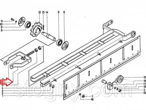Призначена для натягу, у комплекті з натяжною зіркою, транспортера живича зернометувача